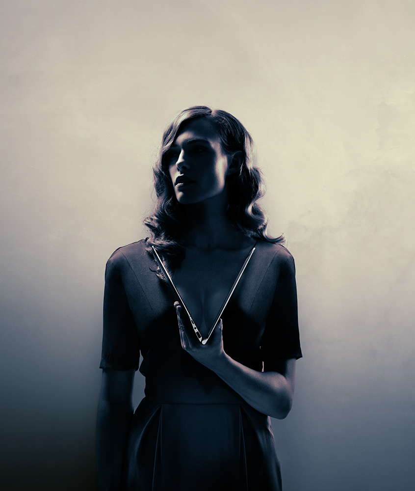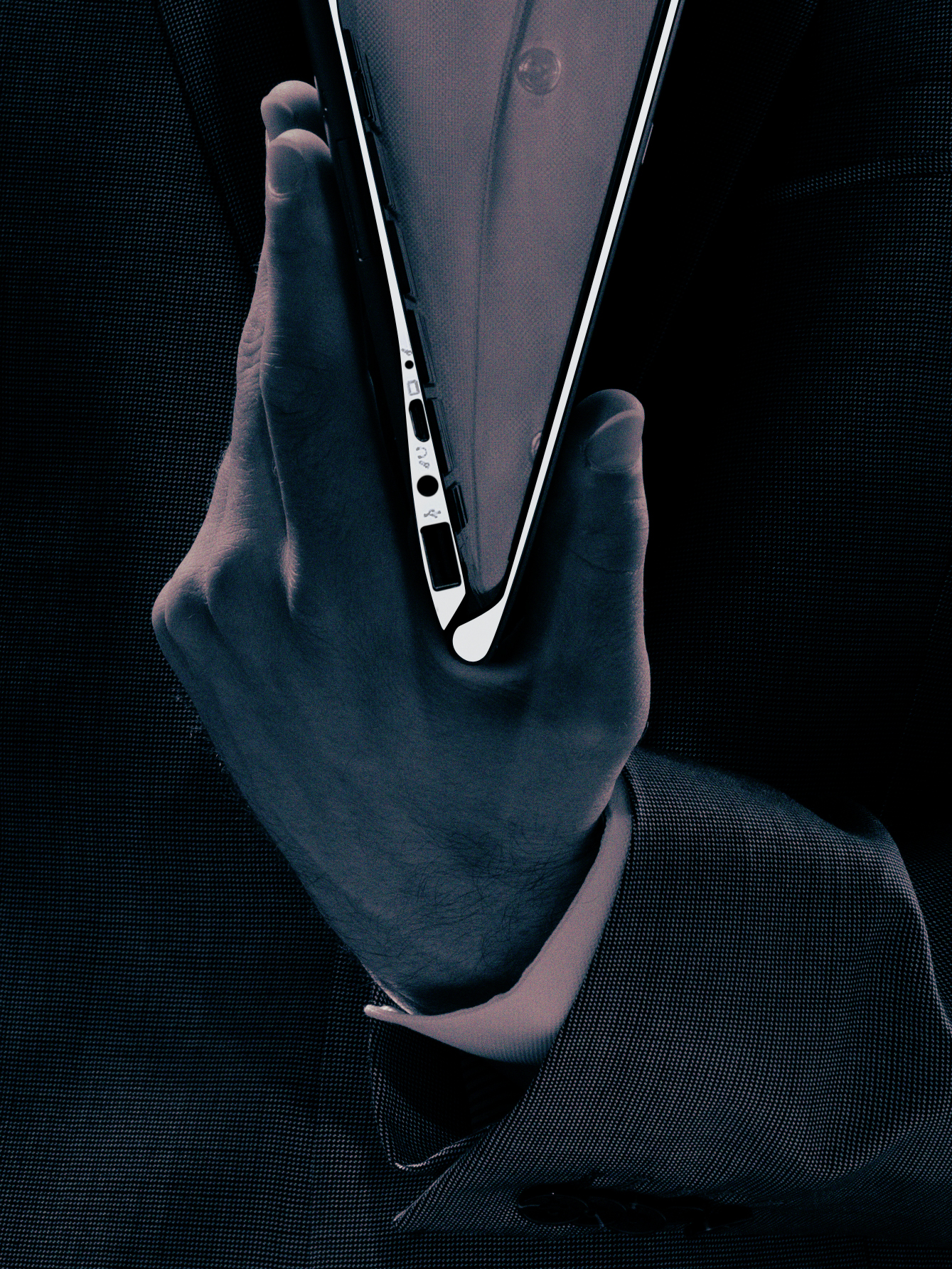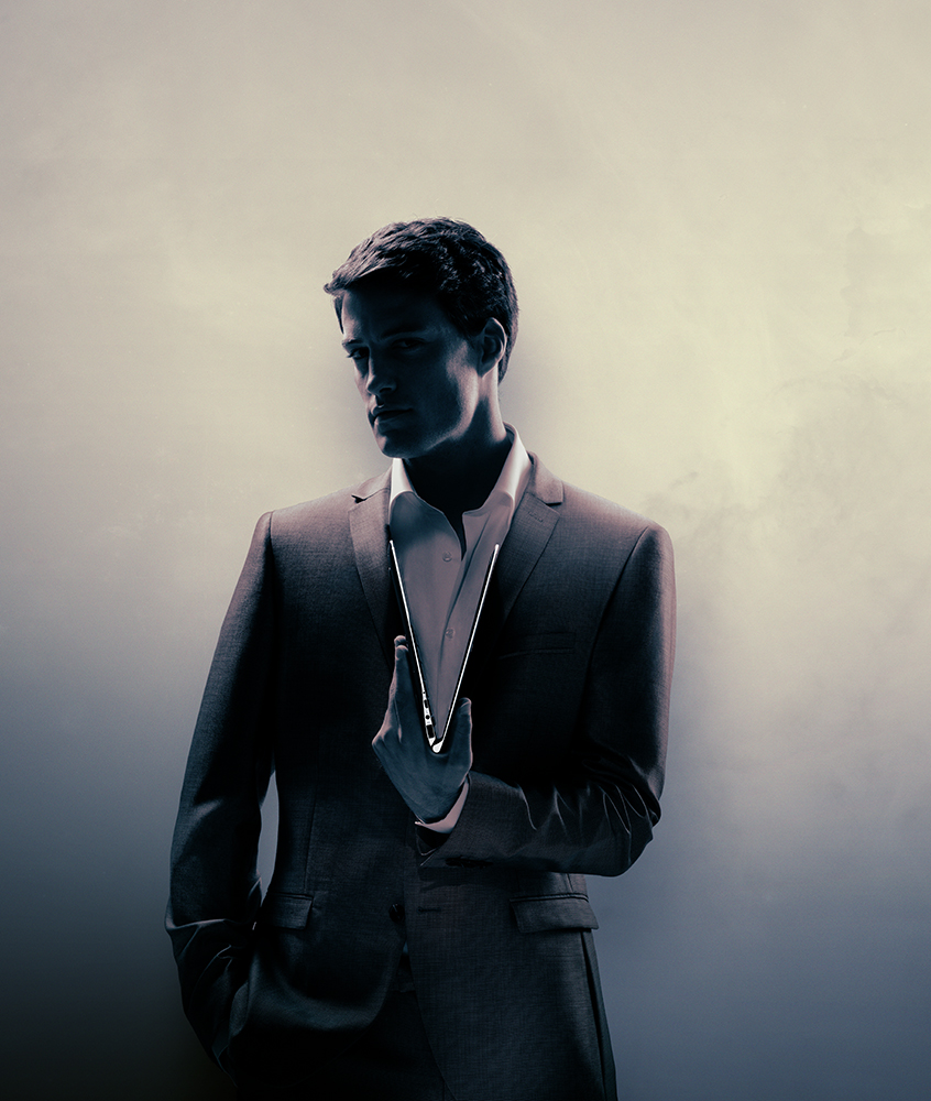 This was a photo shoot for a new Samsung Notebook product. The thin lines of the computer match the clothing of the models. I used a colour scheme that shifts subtly from a yellowish white to magenta and towards a dark blue hue that brings a little mystery and a lot of gravity to the shot.