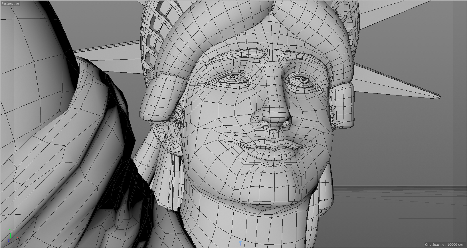 The concept was to create a smiling Statue of Liberty that would appeal to the audience’s imagination. For the background I used a HDRI image of a sky. A flat sky image wouldn’t work–the sky had to move along with the camera as it panned around the statue. Using IBL (image based lighting), the statue reflects the light from the HDRI image, making the two fits seamlessly together. The trickiest part was to create a believable smile–I mean, it isn’t every day you see a statue crack a grin.